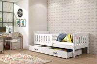KUBUŚ 90X190 jednolůžko pro mladé s matrací a zásuvkou, bílé