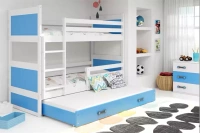 Juniorská postel pro tři osoby RICO 90X190 s matrací a zásuvkou, bílá/modrá