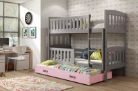 KUBUŚ 90X190 třímístná postel pro mládež s matrací a zásuvkou, grafit/růžová