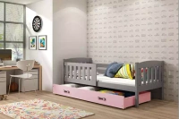 KUBUŚ 90X190 jednolůžko pro mladé s matrací a zásuvkou, grafit/růžová