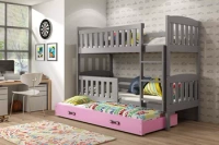 Trojlůžko pro mladé KUBUŚ 90X200 se zásuvkou, grafit/růžová