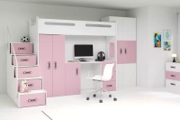 MAX 1 80X200 trojlůžko pro mládež s matrací a psacím stolem, růžová barva