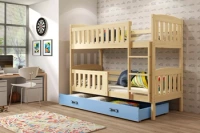 Patrová postel KUBUŚ 90X200 se zásuvkou, borovice/modrá
