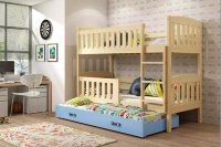 Trojlůžko pro mládež KUBUŚ 90X190 s matrací a zásuvkou, borovice/modrá