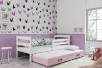 Rozkládací postel pro mládež ERYK 80X190 s matrací a zásuvkou, bílá/růžová