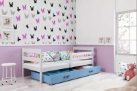 Jednolůžko pro dospívající ERYK 90x190 s matrací a zásuvkou, bílá/modrá