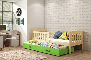 Výsuvná postel pro mládež KUBUŚ 80X190 s matrací a zásuvkou, borovice/zelená