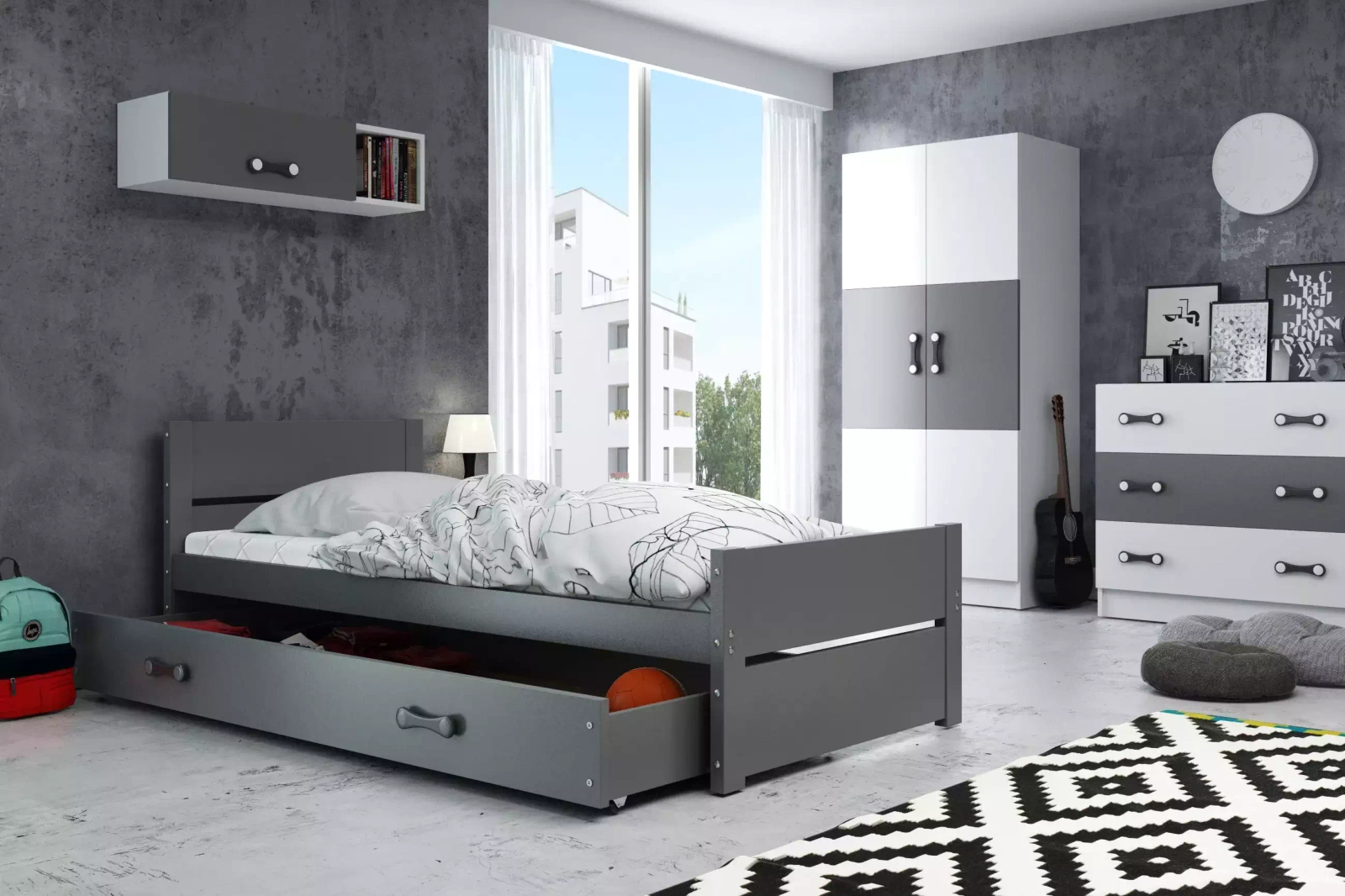 BARTEK jednolůžko pro mládež 90X200 s matrací a zásuvkou, grafitová barva