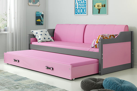 DAWID 90X200 výsuvná postel pro mládež s matrací a zásuvkou, grafit/růžová