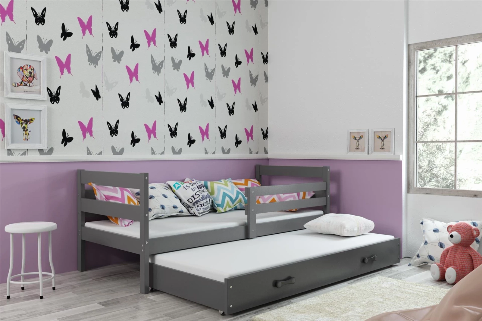 Dětská postel ERYK 90x190 s matrací a zásuvkou, šedá