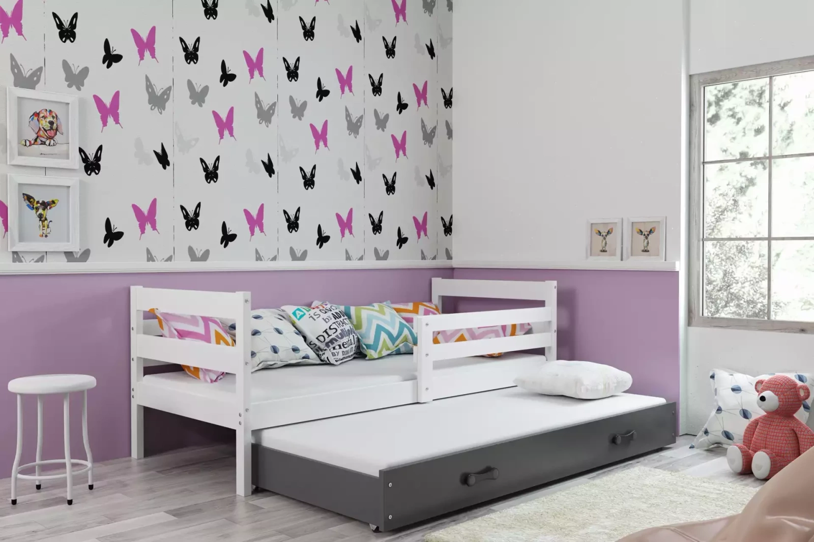 Dětská postel ERYK 90x190 se zásuvkou, bílá/šedá