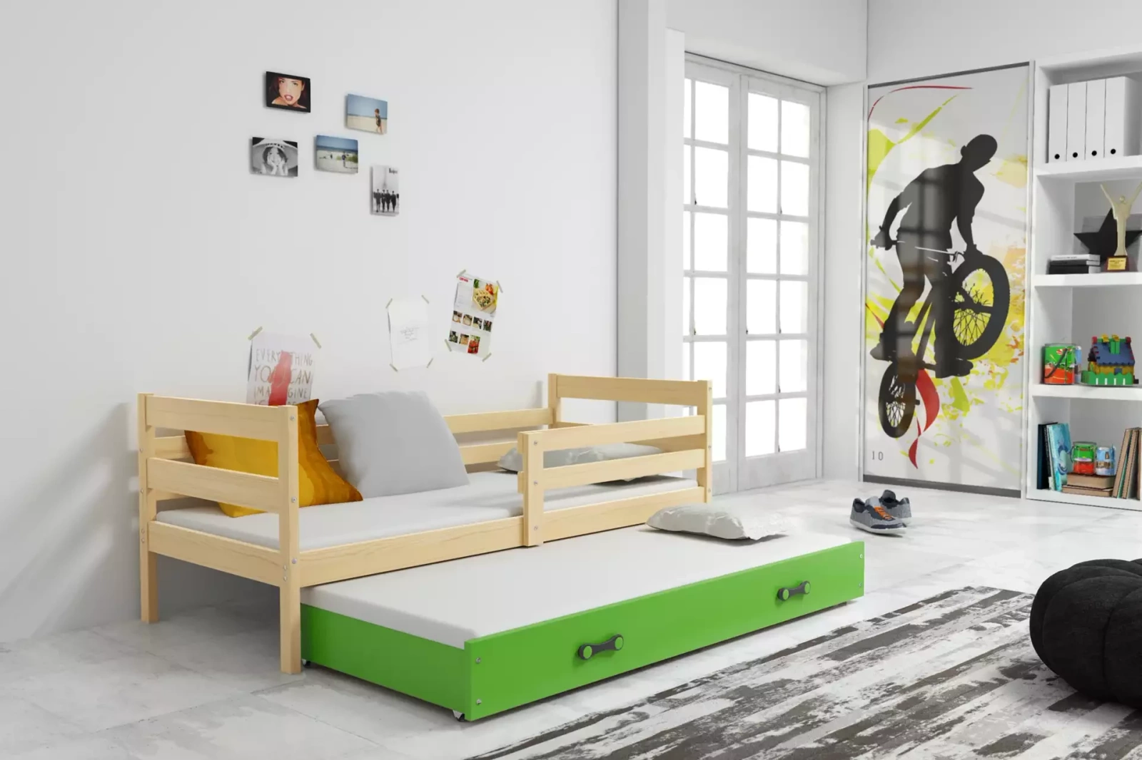 Dětská postel ERYK 90x190 se zásuvkou, borovice/zelená