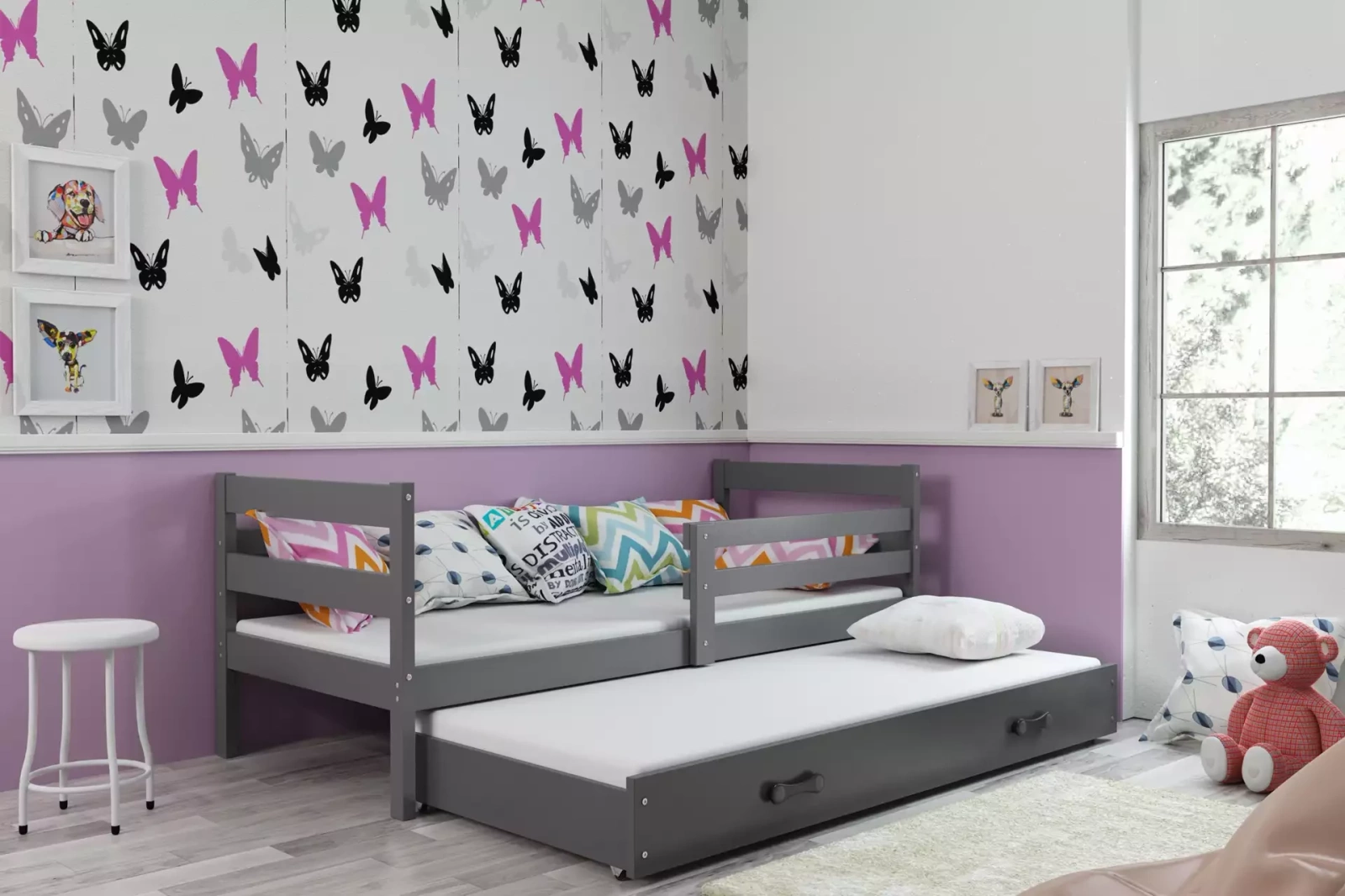 Dětská postel ERYK 90x190 se zásuvkou, šedá