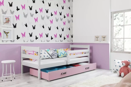 Jednolůžko pro dospívající ERYK 90x190 s matrací a zásuvkou, bílá/růžová