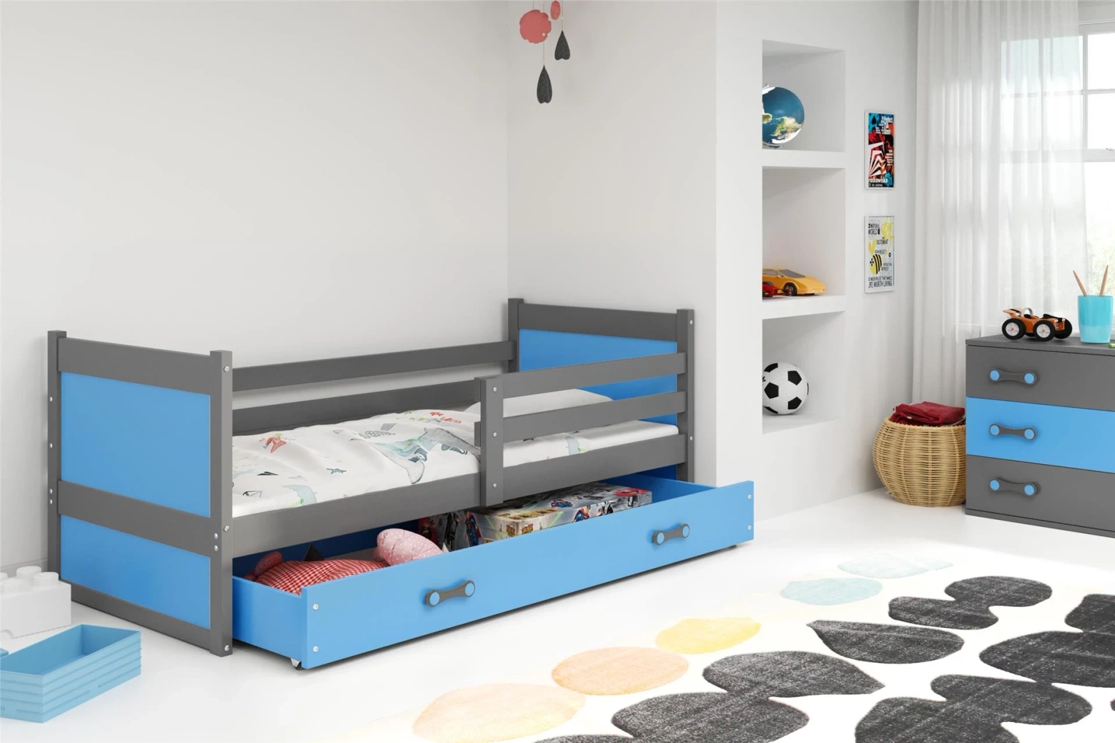 Jednolůžko pro dospívající Rico 90x190 s matrací a zásuvkou, šedomodré