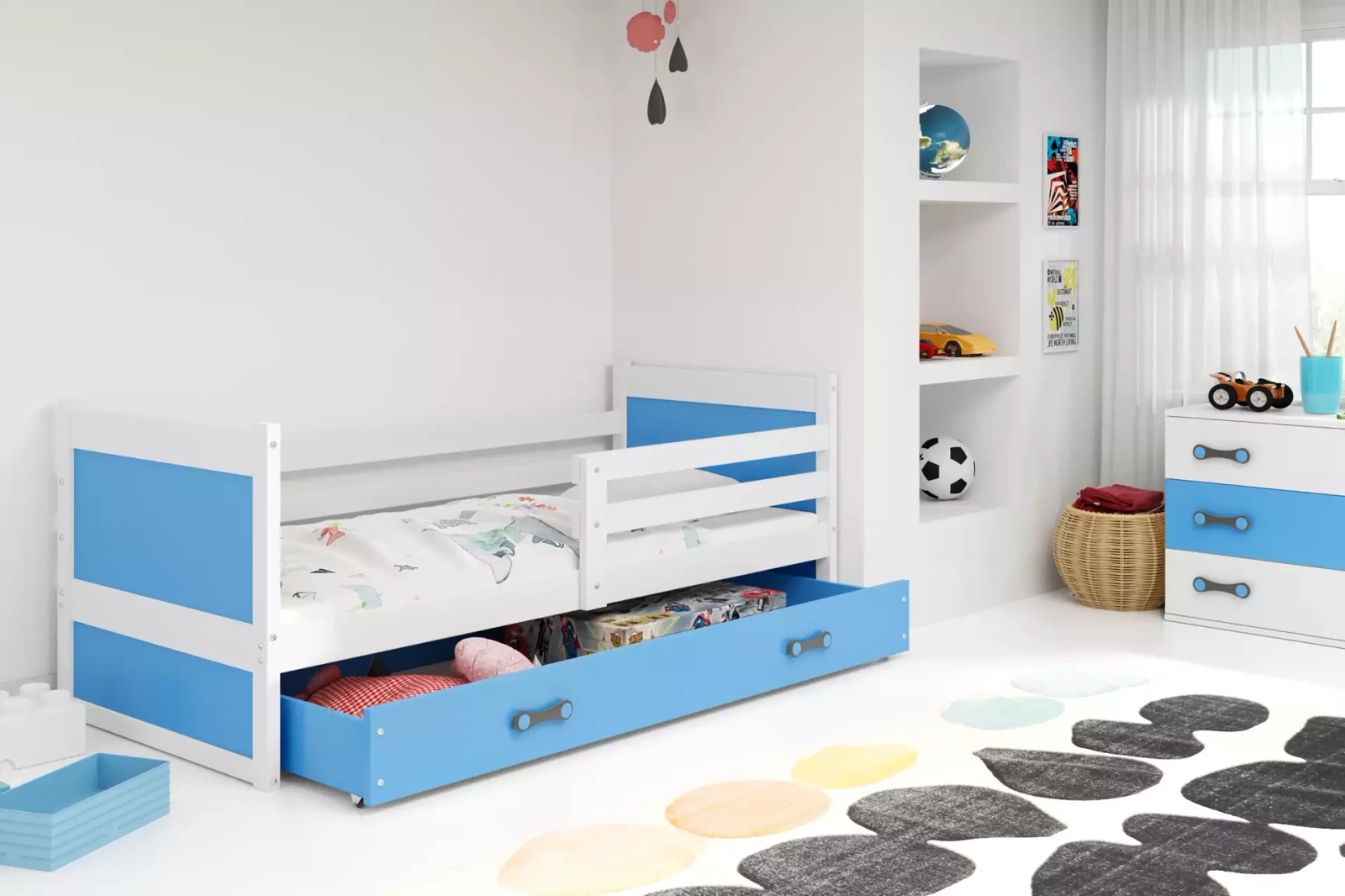 Jednolůžko pro dospívající Rico 90x190 se zásuvkou, bílá/modrá