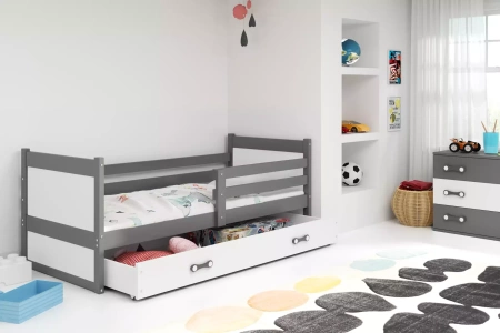 Jednolůžko pro dospívající Rico 90x190 se zásuvkou, šedá/bílá