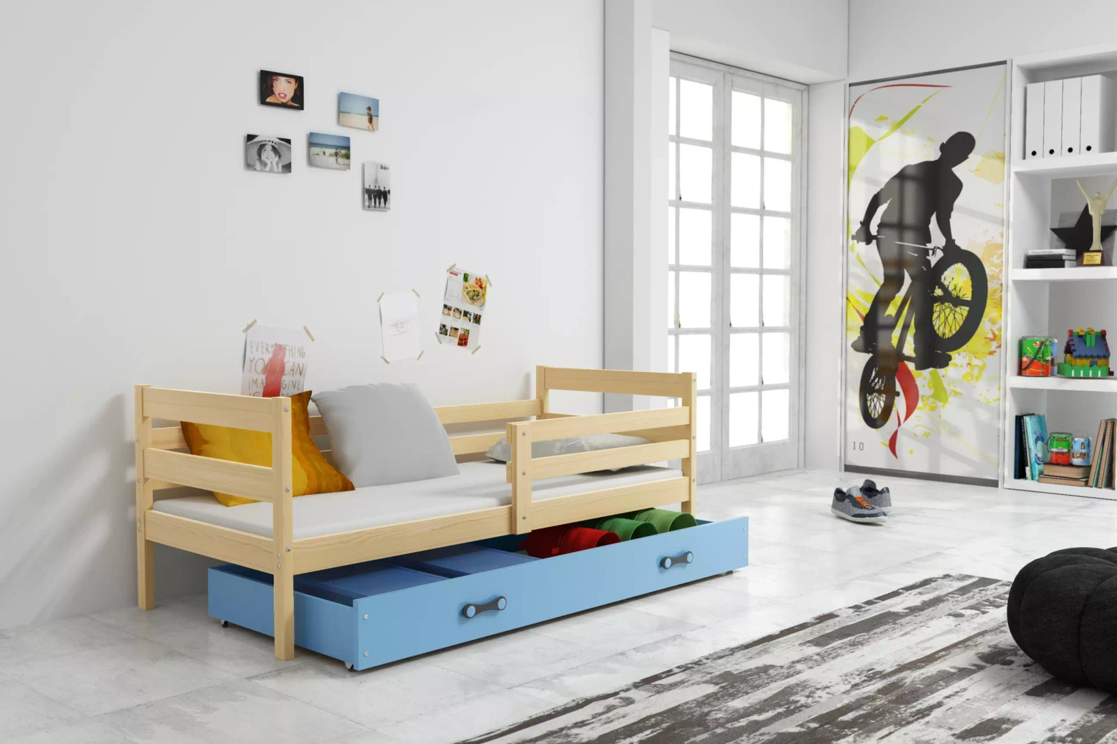 Jednolůžko pro mládež ERYK 90X200 s matrací a zásuvkou, borovice/modrá