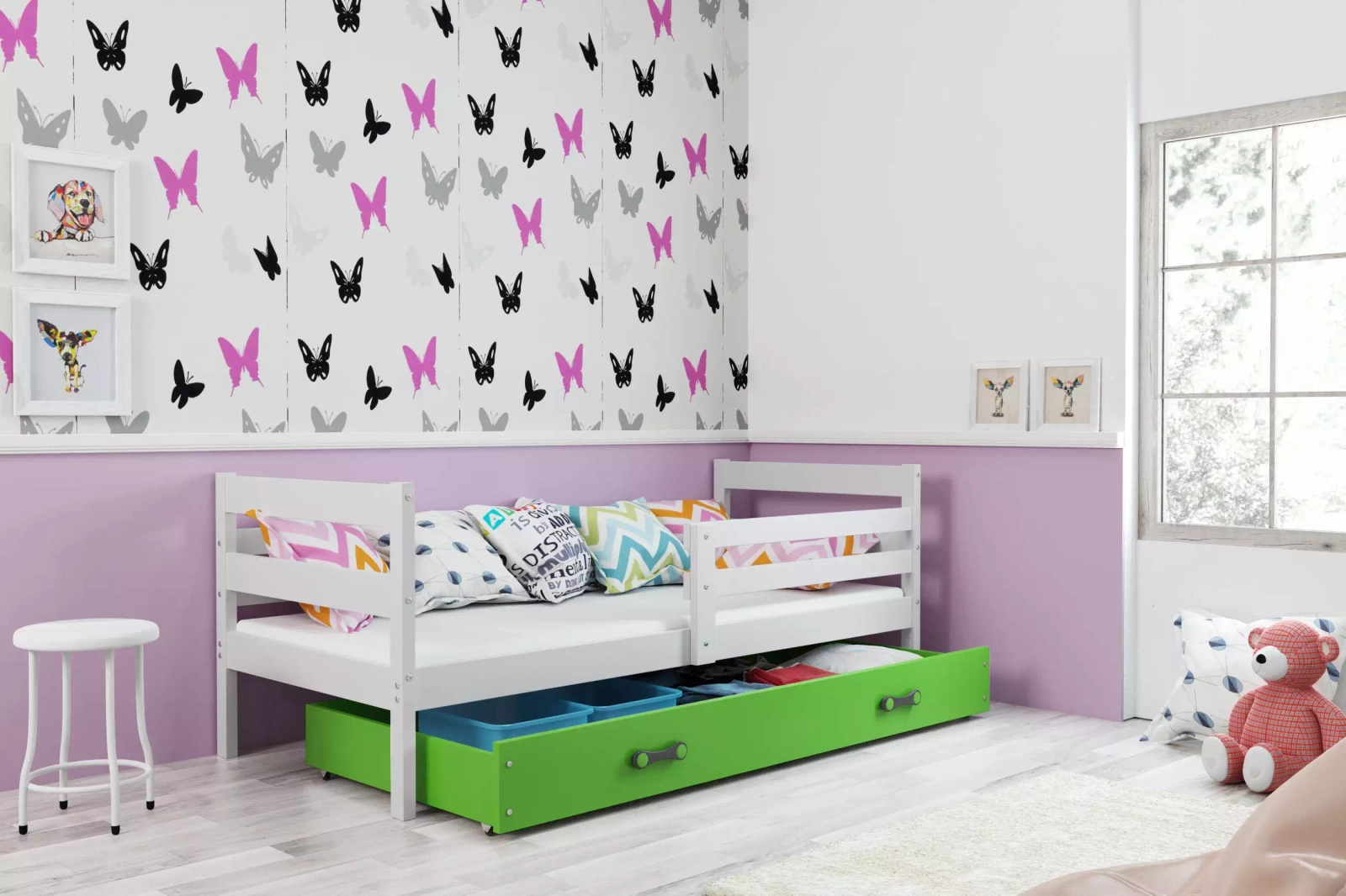 Jednolůžko pro mládež ERYK 90X200 se zásuvkou, bílá/zelená
