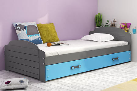 Jednolůžko pro mládež LILI 90X200 s matrací a zásuvkou, grafit/modrá