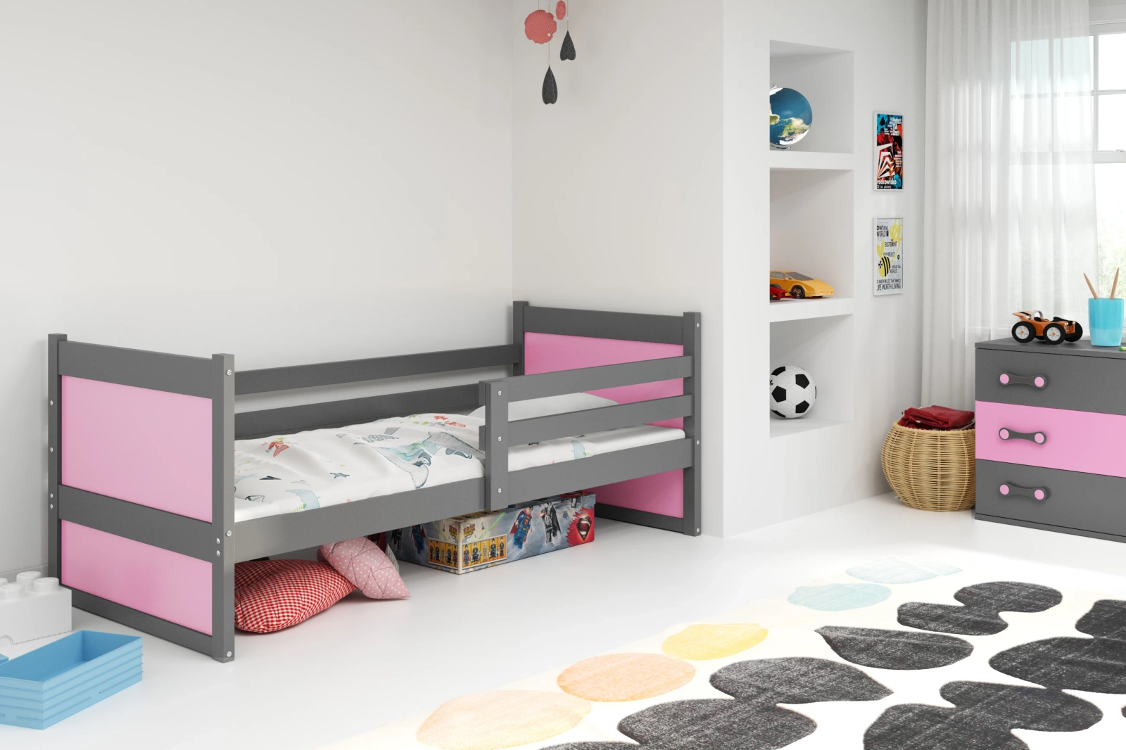 Jednolůžko pro mládež RICO 90X200 s matrací, grafit/růžová