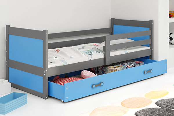 Jednolůžko pro mládež RICO 90X200 se zásuvkou, grafit/modrá