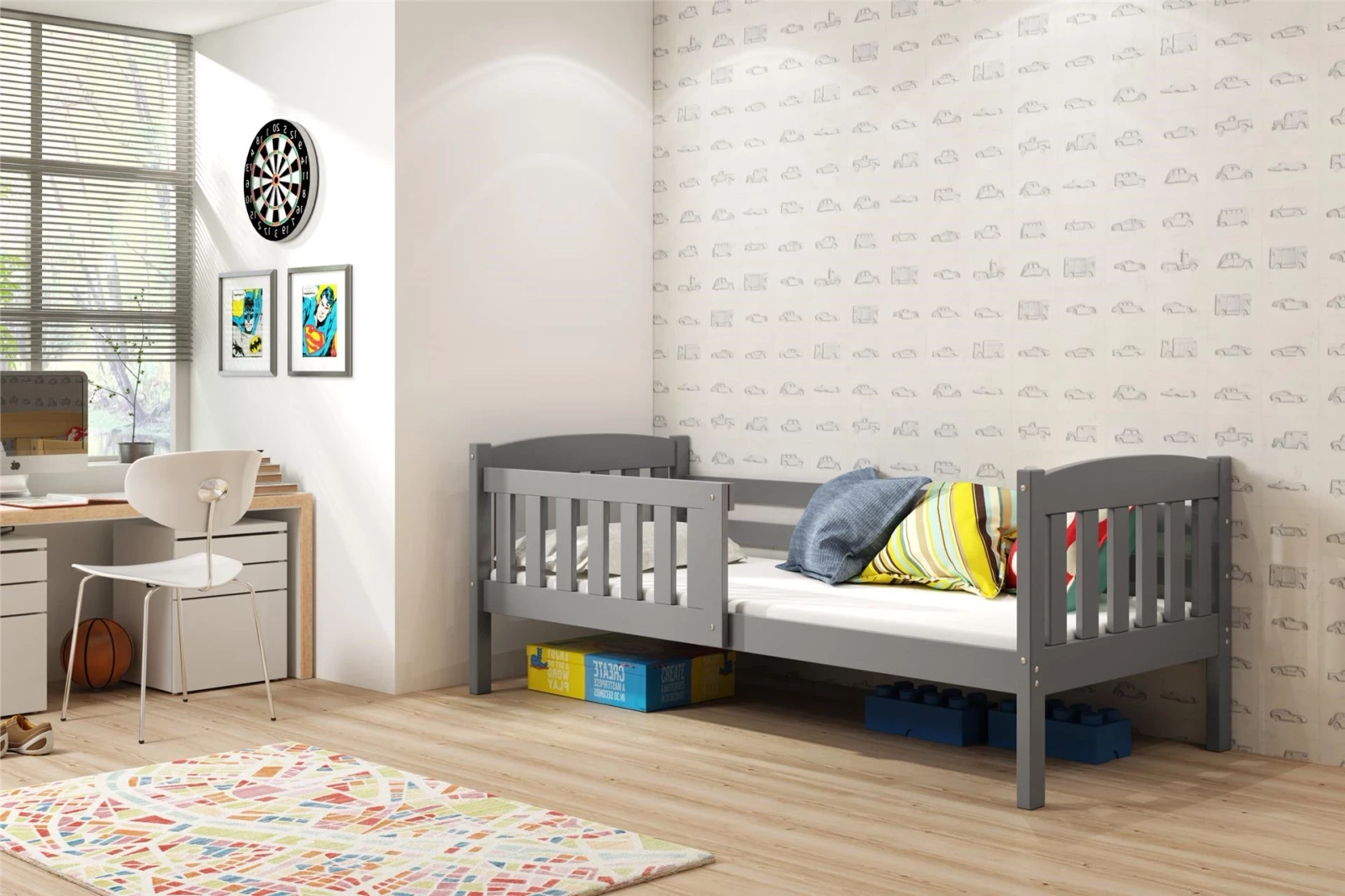Jednolůžková postel Kubuś 90x190 s matrací, šedá
