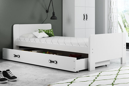 Juniorská jednolůžková postel DAREK 80X200 s matrací a zásuvkou, bílá