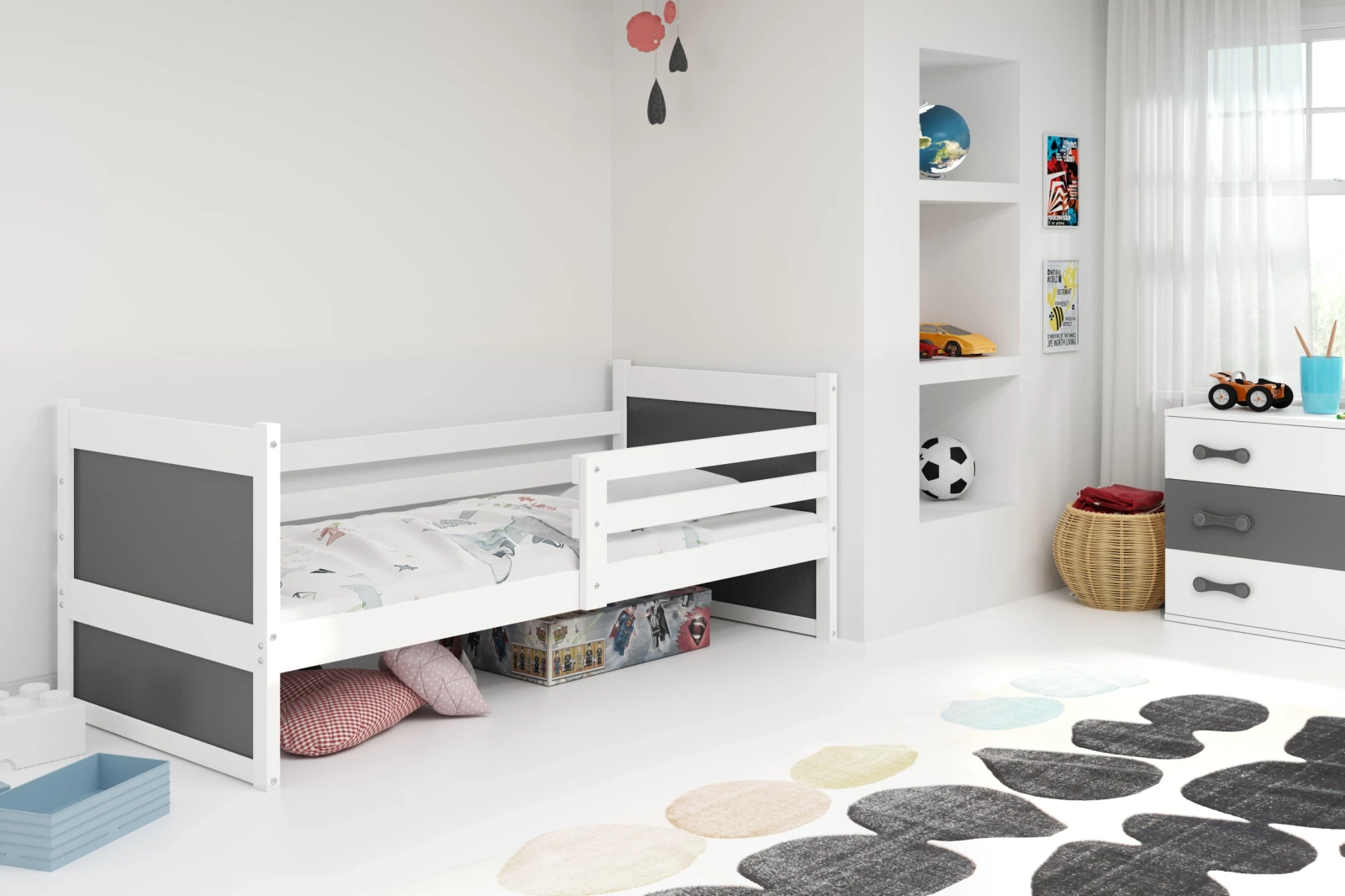Juniorská jednolůžková postel RICO 90X200 s matrací, bílá/grafitová