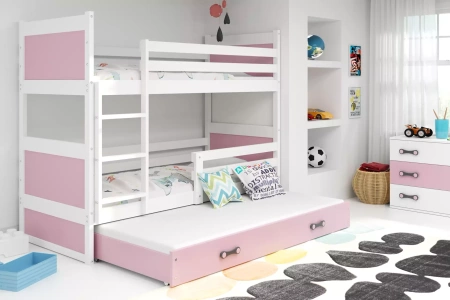 Juniorská postel pro tři osoby RICO 90X190 se zásuvkou, bílá/růžová
