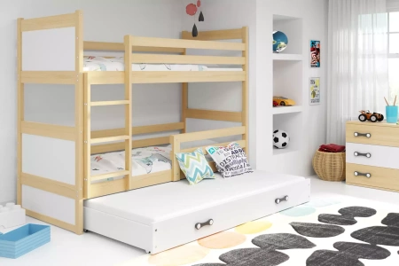 Juniorská postel pro tři osoby RICO 90X190 se zásuvkou, borovice/bílá