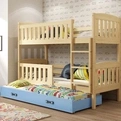 KUBUŚ 90X190 třímístná postel pro mládež se zásuvkou, borovice/modrá