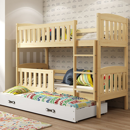 KUBUŚ 90X190 trojlůžko pro mladé se zásuvkou, borovice/bílá