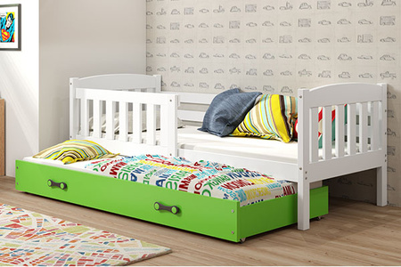 KUBUŚ 90X200 výsuvná postel pro mládež s matrací a zásuvkou, bílá/zelená