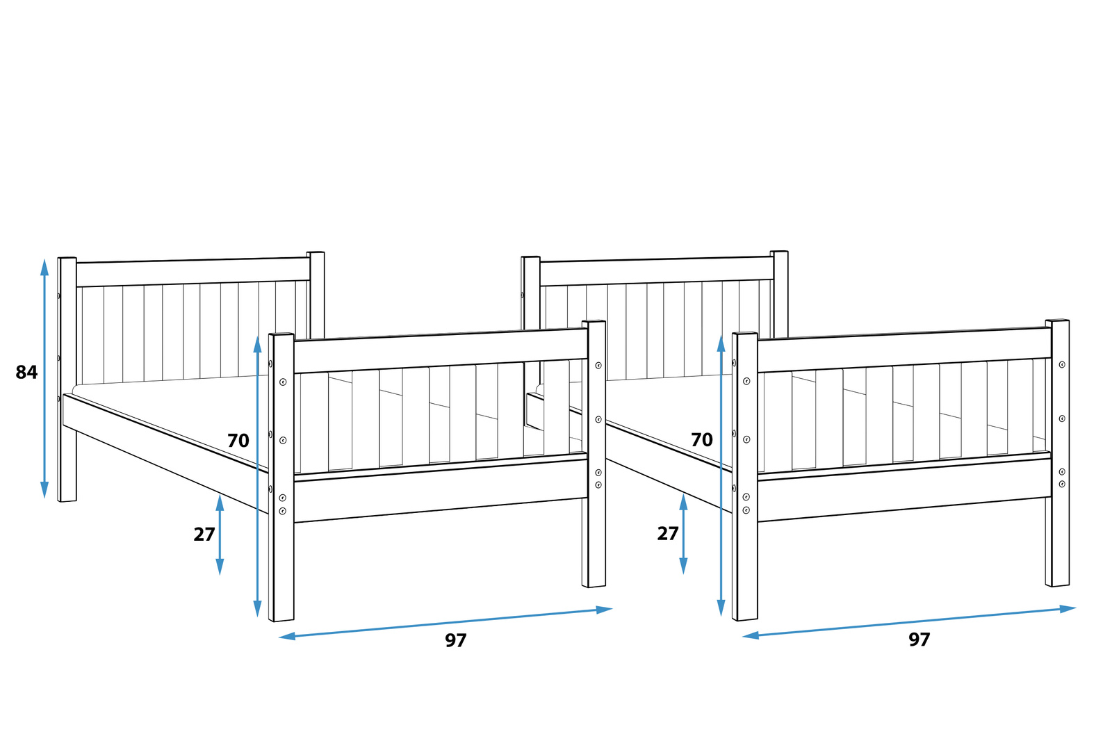 V závislosti na vašich potřebách můžete postel Kacper kdykoli sestavit jako patrovou postel nebo ji rozložit na dvě samostatná lůžka.