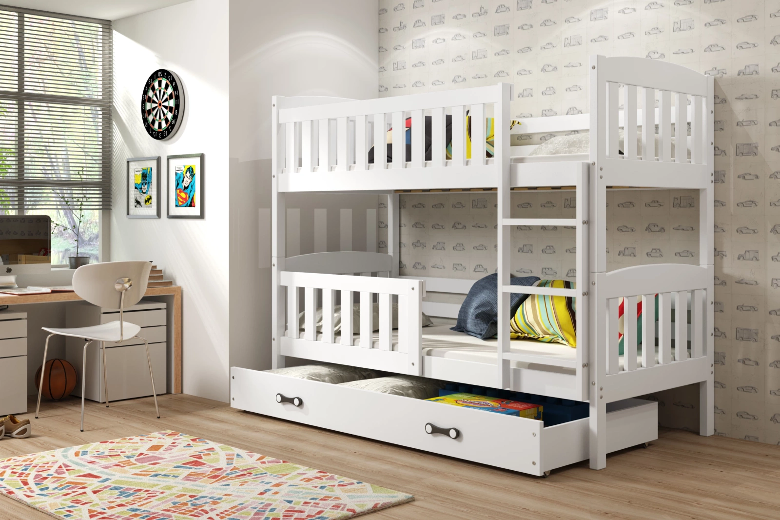 Patrová postel KUBUŚ 90X190 s matrací a zásuvkou, bílá