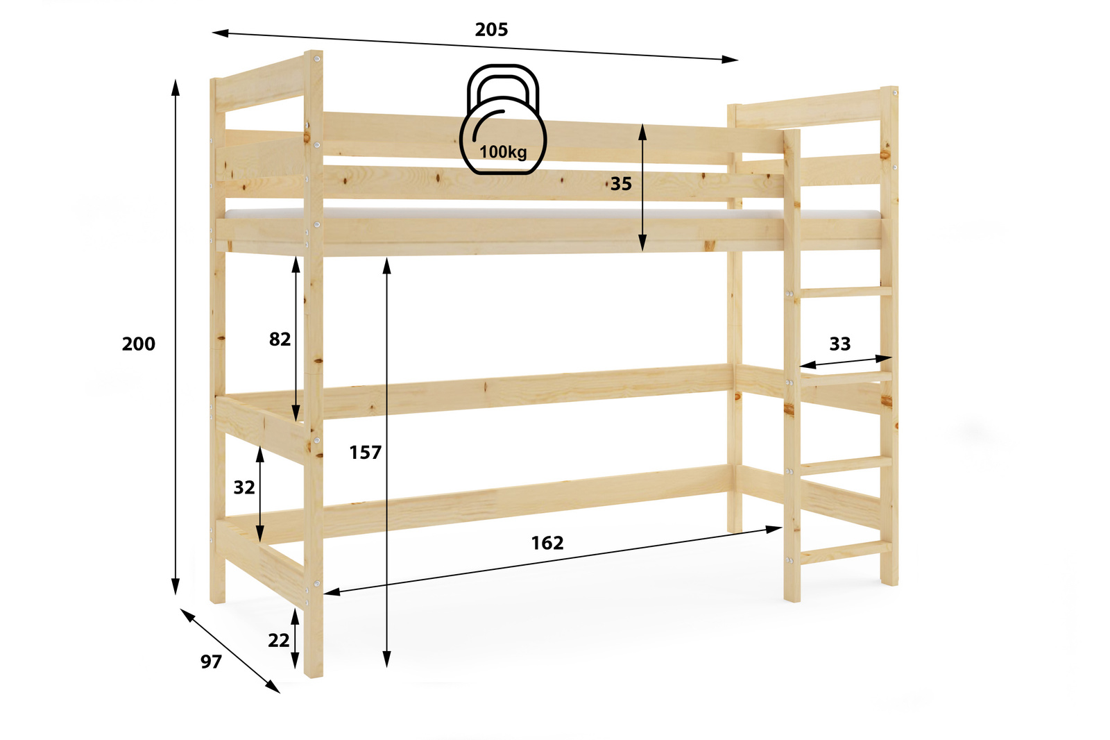 Hlavní předností patrové postele pro mládež je její pevná konstrukce z kvalitního dřeva, která dodává rámu krásný přírodní vzhled. Tento materiál zaručuje odolnost a stabilitu a zároveň odpovídá módnímu ekologickému trendu v interiérovém designu. Díky těmto vlastnostem bude patrová postel pro mládež spolehlivým vybavením pokoje po mnoho let.