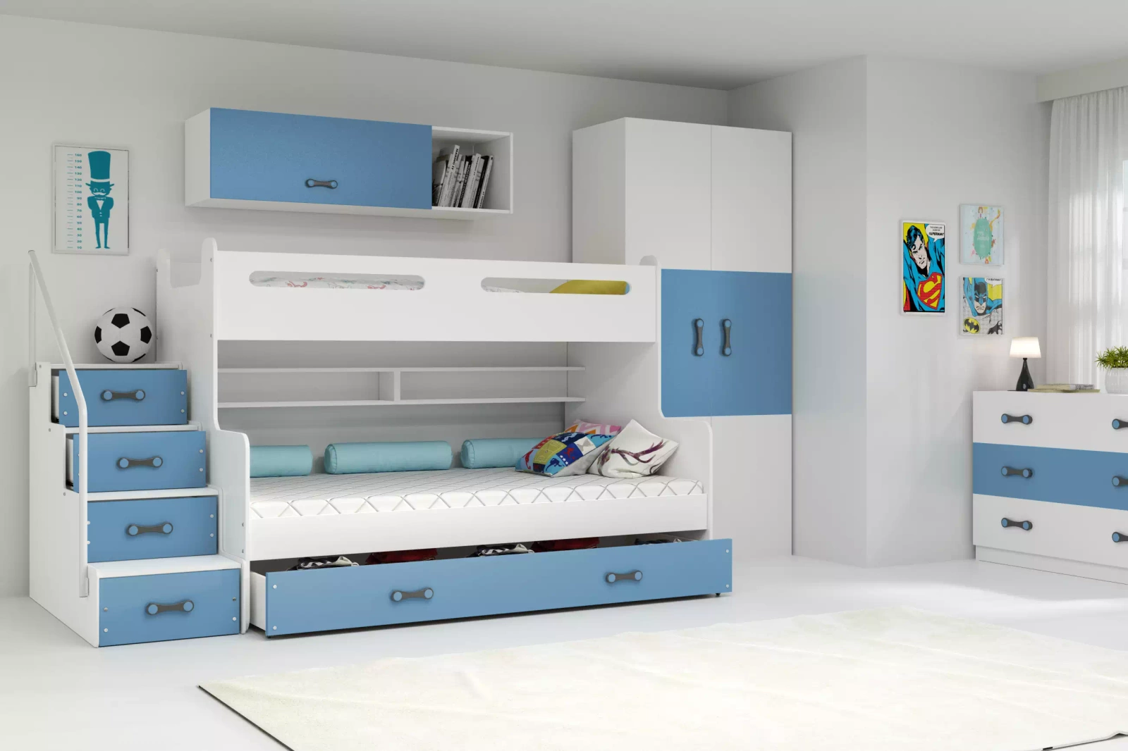 Patrová postel pro mládež MAX 3 120X200 s matrací a zásuvkou, modrá
