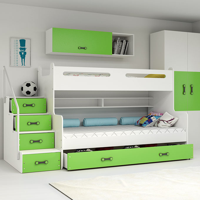 Patrová postel pro mládež MAX 3 120X200 s matrací a zásuvkou, zelená
