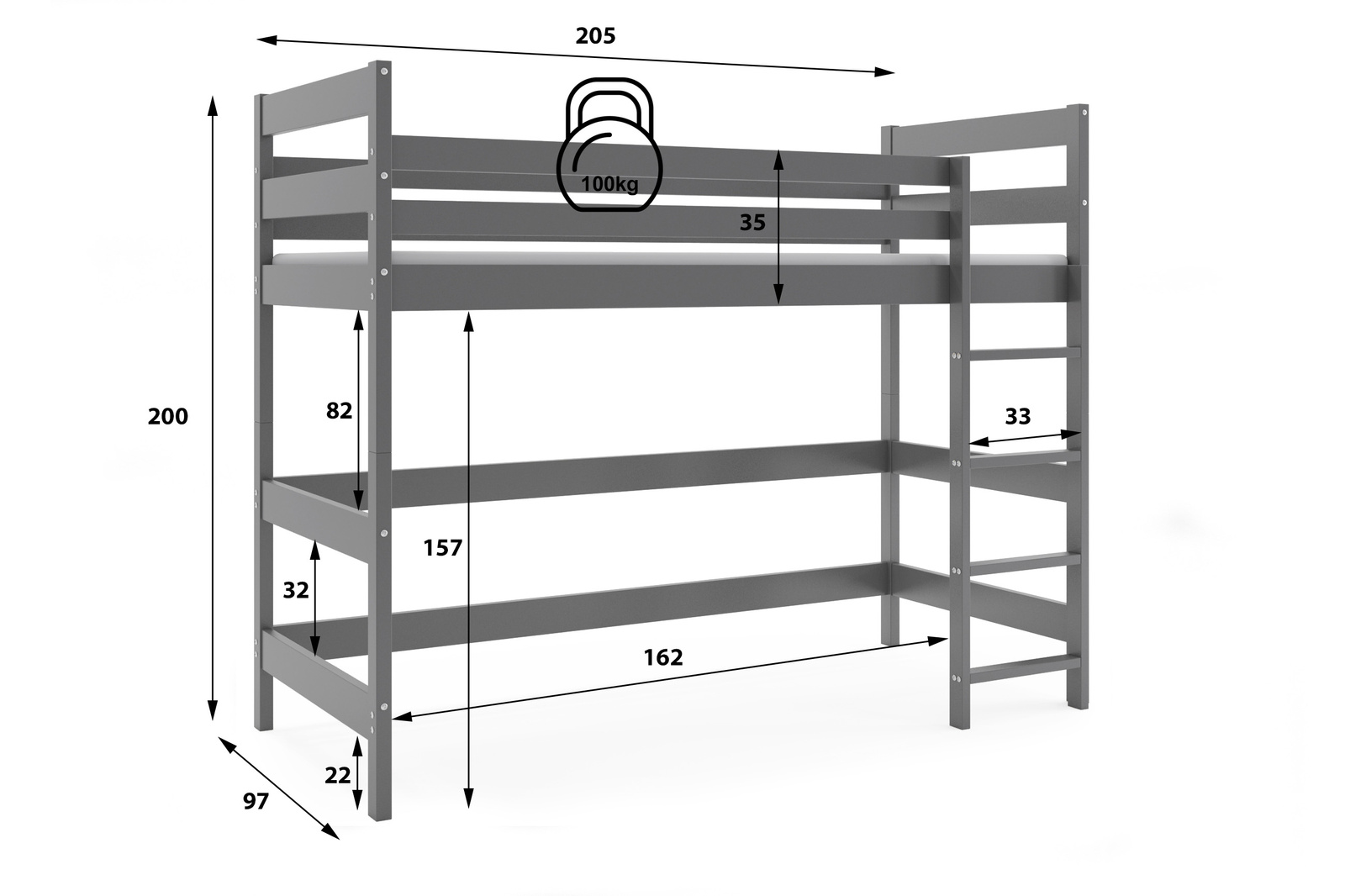 - Patrová postel pro mládež je ideálním řešením pro pokoj teenagera. Je vyroben ze dřeva, zaujme moderním designem a grafitovým rámem. Plocha na spaní o rozměrech 90x200 cm poskytuje pohodlí a klasický styl lze snadno sladit s jakýmkoli interiérem.