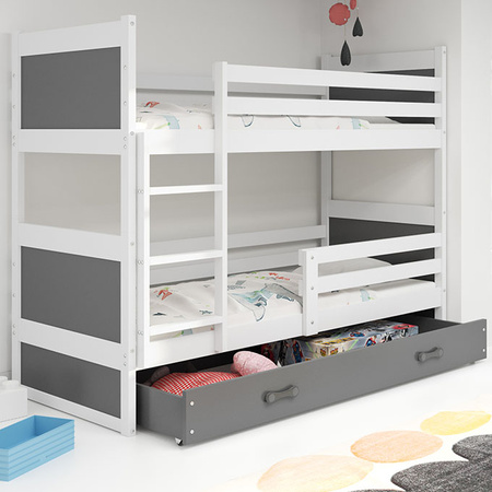 Patrová postel pro mládež RICO 90X200 s matrací a zásuvkou, bílá/grafitová