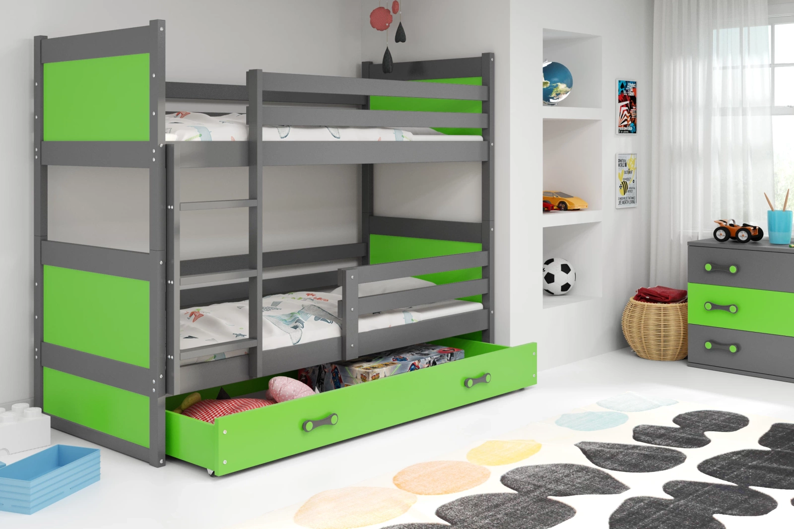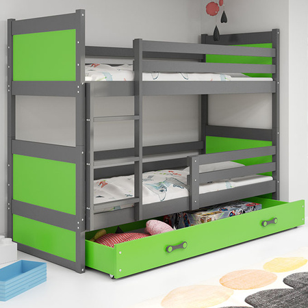 Patrová postel pro mládež RICO 90X200 s matrací a zásuvkou, grafit/zelená