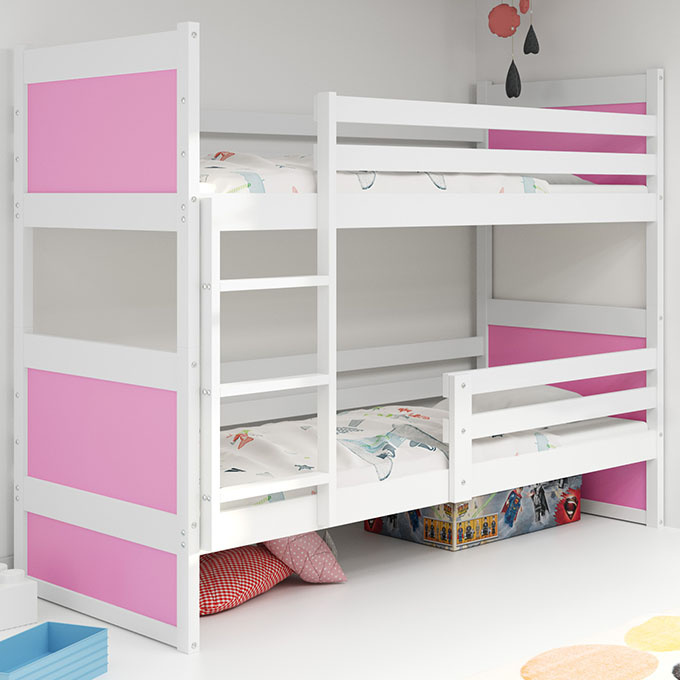 Patrová postel pro mládež RICO 90X200 s matrací, bílá/růžová