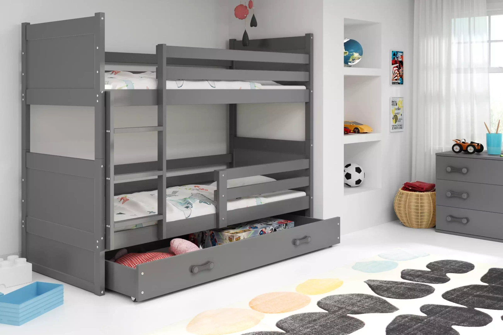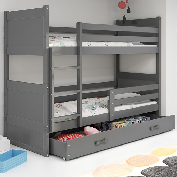 Patrová postel pro mládež RICO 90X200 se zásuvkou, grafitová barva