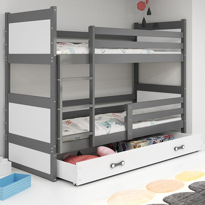 Patrová postel pro mládež RICO 90X200 se zásuvkou, grafitová/bílá