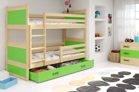 Patrová postel RICO 90X190 se zásuvkou, borovice/zelená
