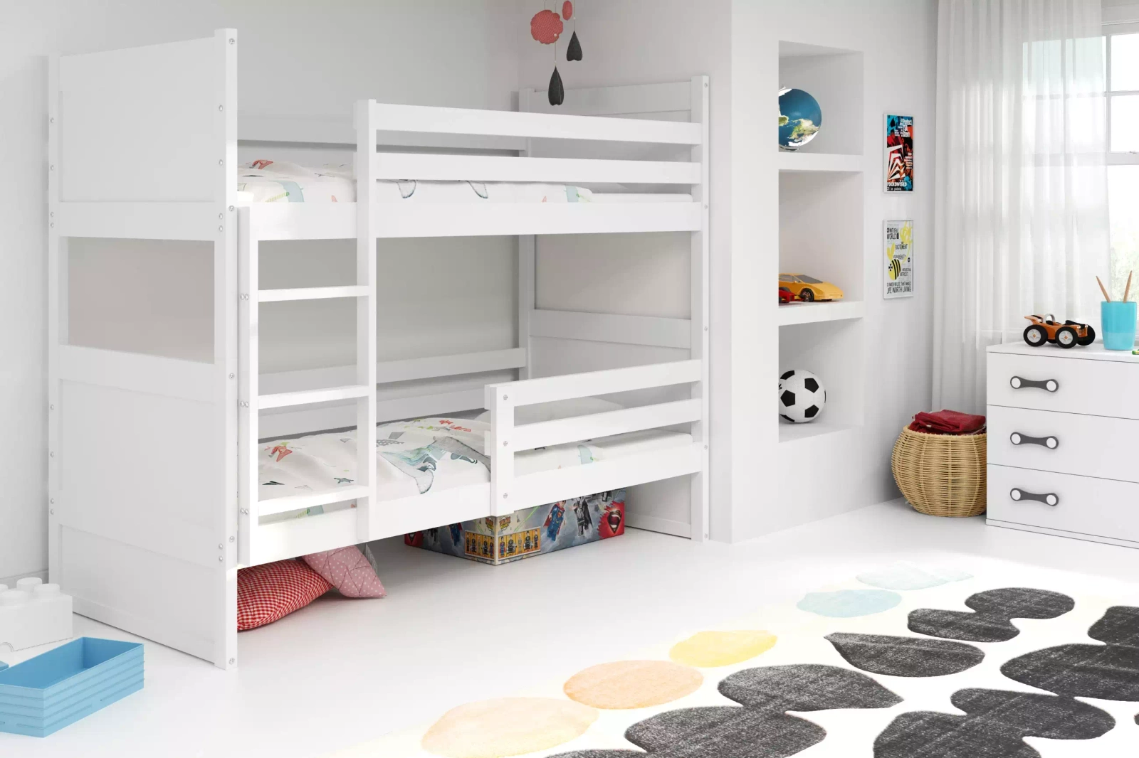 Dětská postel Rico se vyznačuje jednoduchým tvarem a minimalistickým charakterem, takže ji lze úspěšně umístit do dívčích i chlapeckých pokojů. Nábytek snadno zapadne do interiéru a barevného schématu místnosti. Dětská patrová postel je vhodná zejména v případě, že máte málo místa a nechcete ho dále omezovat. Když si koupíte postel se zásuvkou, získáte možnost uložit pod nábytek ložní prádlo, oblečení a další věci. Na denní bázi je skrytý, na druhou stranu z něj lze v případě potřeby rychle vyjmout nezbytné věci. Dětská postel poskytuje vysoký komfort a zdravý spánek. Kromě toho se můžete spolehnout na to, že budete vybaveni robustním a pevným rámem. Dětská postel se zásuvkou je skvělou investicí minimálně na několik let.