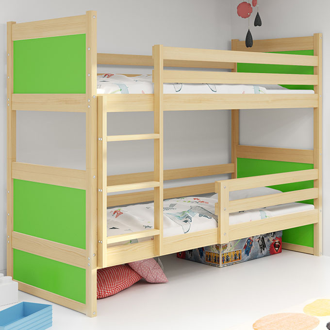 Víme, že vaším cílem je, aby vaše děti byly v bezpečí a v pohodlí. Chcete, aby měly v domě svůj vlastní koutek. Jsme si také dobře vědomi toho, že vytvořit společný pokoj pro dvě děti, zejména pokud je mezi nimi velký věkový rozdíl, není zrovna nejjednodušší. Pokud se s takovou výzvou potýkáte, vytvořili jsme palandu RICO právě pro vás. Dřevěná konstrukce je stabilní a silné šrouby zajišťují dodatečné zpevnění. Zábrany nainstalované ve spodní a horní části postele dále chrání děti před pádem, i když v noci ještě překypují energií jako kolibříci. Lze je namontovat vpravo nebo vlevo; rozhodnutí je na vás při instalaci. Flexibilní lamelová základna podporuje správné držení těla, což se v budoucnu projeví zdravou a silnou páteří, za kterou vám vaše děti poděkují. Přírodní dřevo zateplí každou místnost a nabízí řadu designových možností.