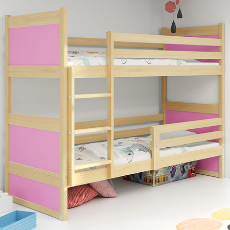 Patrová postel RICO 90X200 s matrací, borovice/růžová