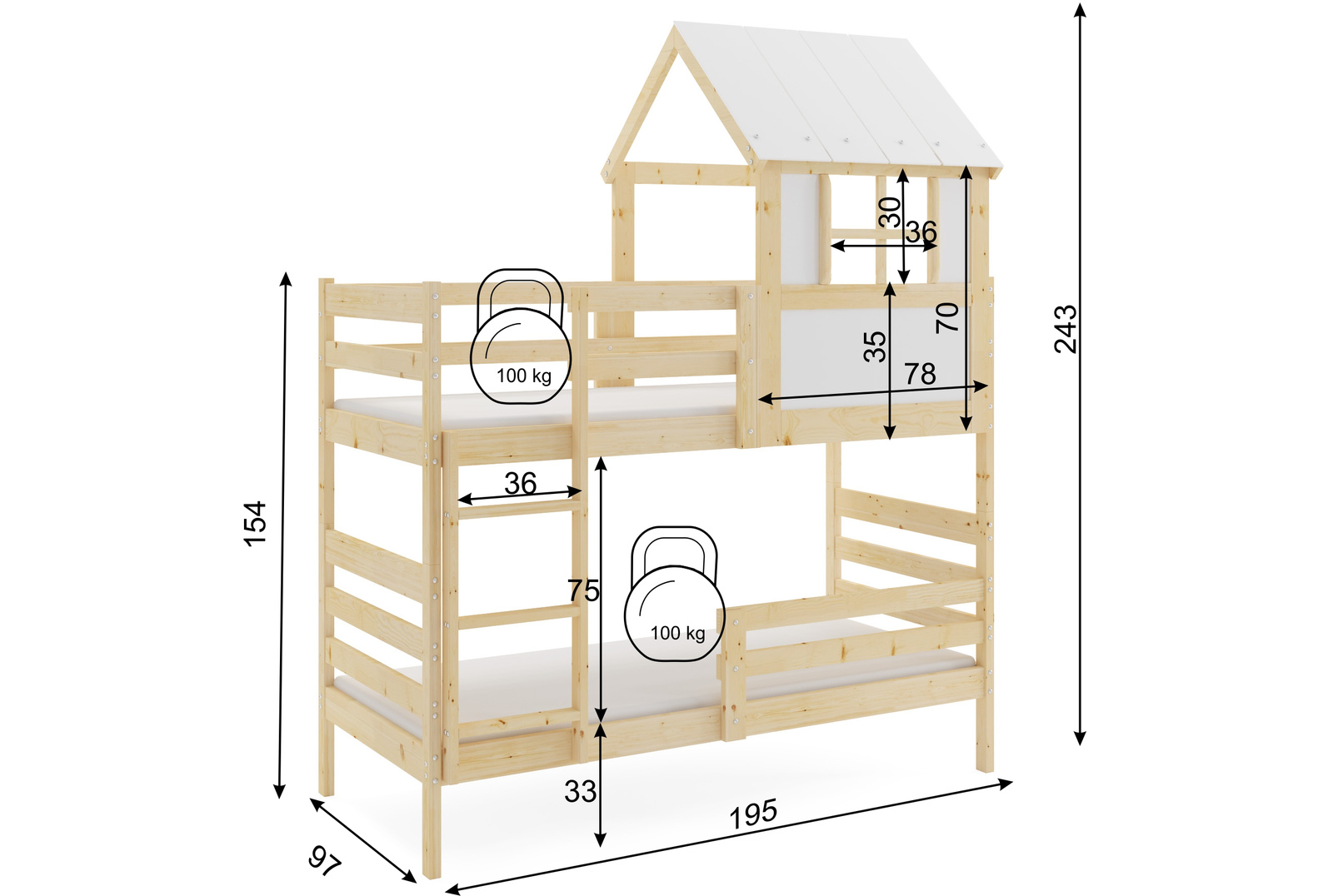 - Patrová postel je ideální volbou pro mladé lidi. Je vyroben z přírodního dřeva s bílými čely a poskytuje plochu na spaní o rozměrech 90x190 cm a další lůžko. Funkční a stylové řešení pro každý pokoj pro mládež.